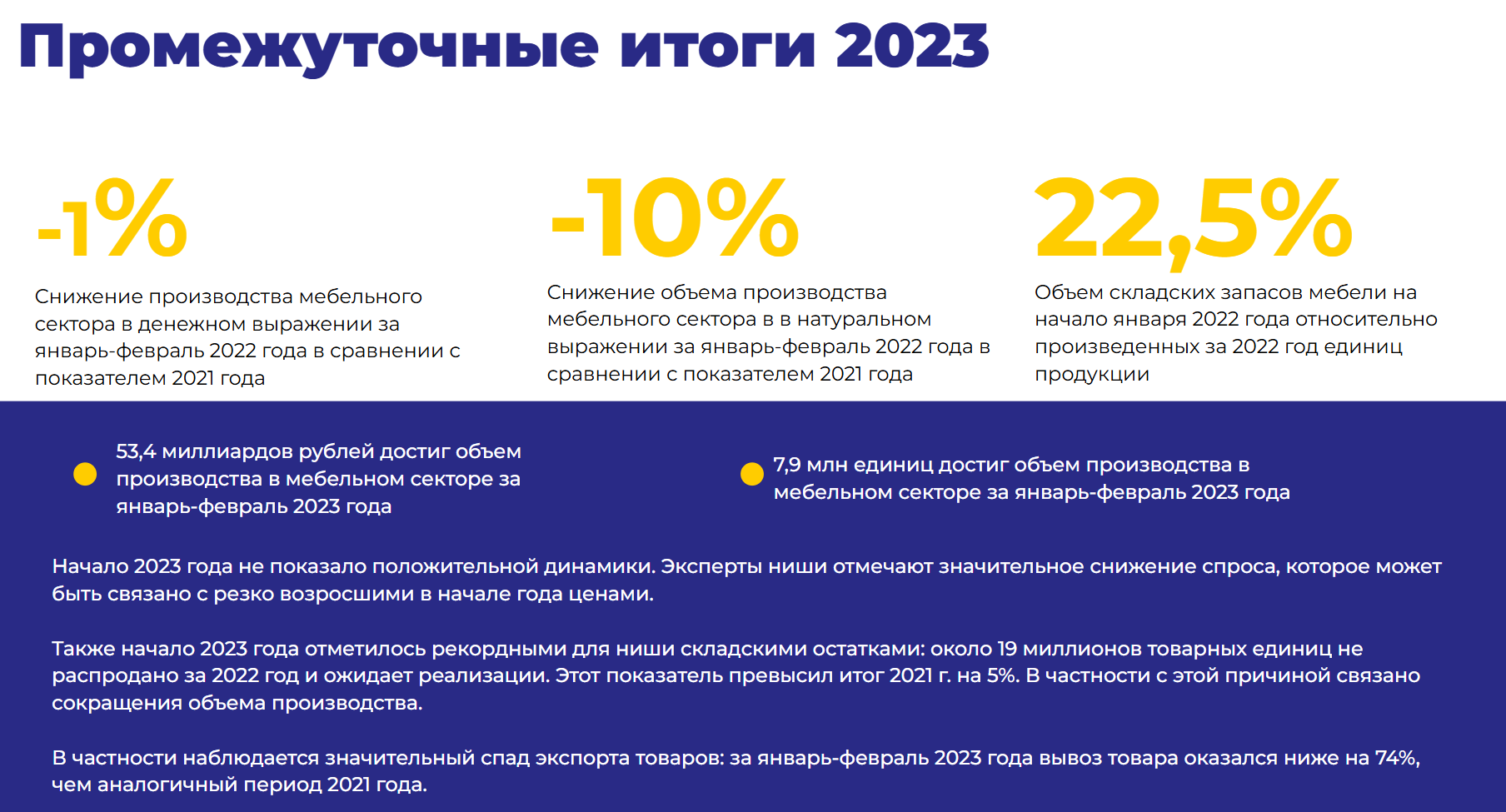 Статистика к выступлению в Торгово-Промышленной Палате СПБ. Изучили факты и цифры о мебельном рынке за 2022-2023 годы. Дали экспертную оценку и выводы по рынку после масштабных изменений.